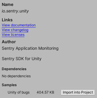Additionally, the packages includes a sample called "Unity of bugs" that can optionally be imported into your project through the package manager. The samples contain a variety of common bugs, including native errors, so you don't have to write them.